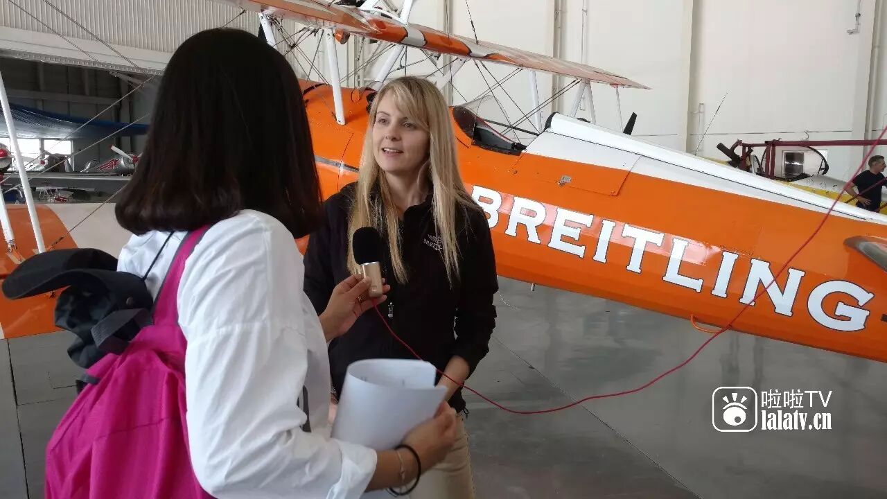 百年灵特技飞行队的Martin带我们认识了机翼天使的经理人Fraye。Fraye有一头金色的秀发,笑容迷人,言语得体,有着成熟的知性美。